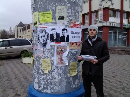 Актывіст аргкамітэту БХД Андрэй Гайдукоў днём 16 лістапада правёў у Наваполацку акцыю салідарнасці з зніклымі беларускімі палітыкамі.